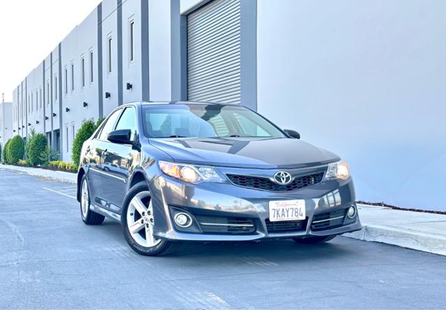 2013 Toyota Camry SE Sport Sedan! Up for grabs is our gorgeous and LIKE NEW, CLEAN TITLE 2013 Toyota Camry SE Sport Sedan! This stunning sedan comes with a CLEAN TITLE, Owned and loved by one family only, this is a SINGLE OWNER CAR - verified through Carfax! Original and only owner took amazing care of this vehicle - all services up to date! Just serviced with fresh premium synthetic oil, new oil filter, engine air intake filter, and cabin air filter! Drives like a new car! ALL ORIGINAL MILES car verified through Carfax! Comes with a clean smog certificate! PRICED TO SELL, this will go fast! The exterior is painted in a clean and like new Magnetic Grey Metallic paint color - looks amazing! The interior is draped in a charcoal grey leather with light grey fabric seat inserts - very stylish and very comfortable! Feels and looks new inside! NON SMOKER CAR! Powered by a 2.5L inline 4 Cylinder engine! Gets 35 MPG Hwy! Can go up to 595 miles on a single tank of gas (Hwy Rated)! Equipped with a 6 Speed Shiftable Automatic transmission, paired with steering wheel mounted paddle shifters! Drives like new and shifts smooth in all gears! Equipped with backup camera, Bluetooth, paddle shifter, LCD touchscreen display, all matching OEM carpet floor mats, like new all matching BF Goodrich All Season tires, cruise control, steering wheel mounted controls, power doors and power windows! Comes with 2 factory keys with remotes, both equipped with keyless entry and auto trunk release! AC blows ice cold. Must see in person to fully appreciate. Showings by appointment.